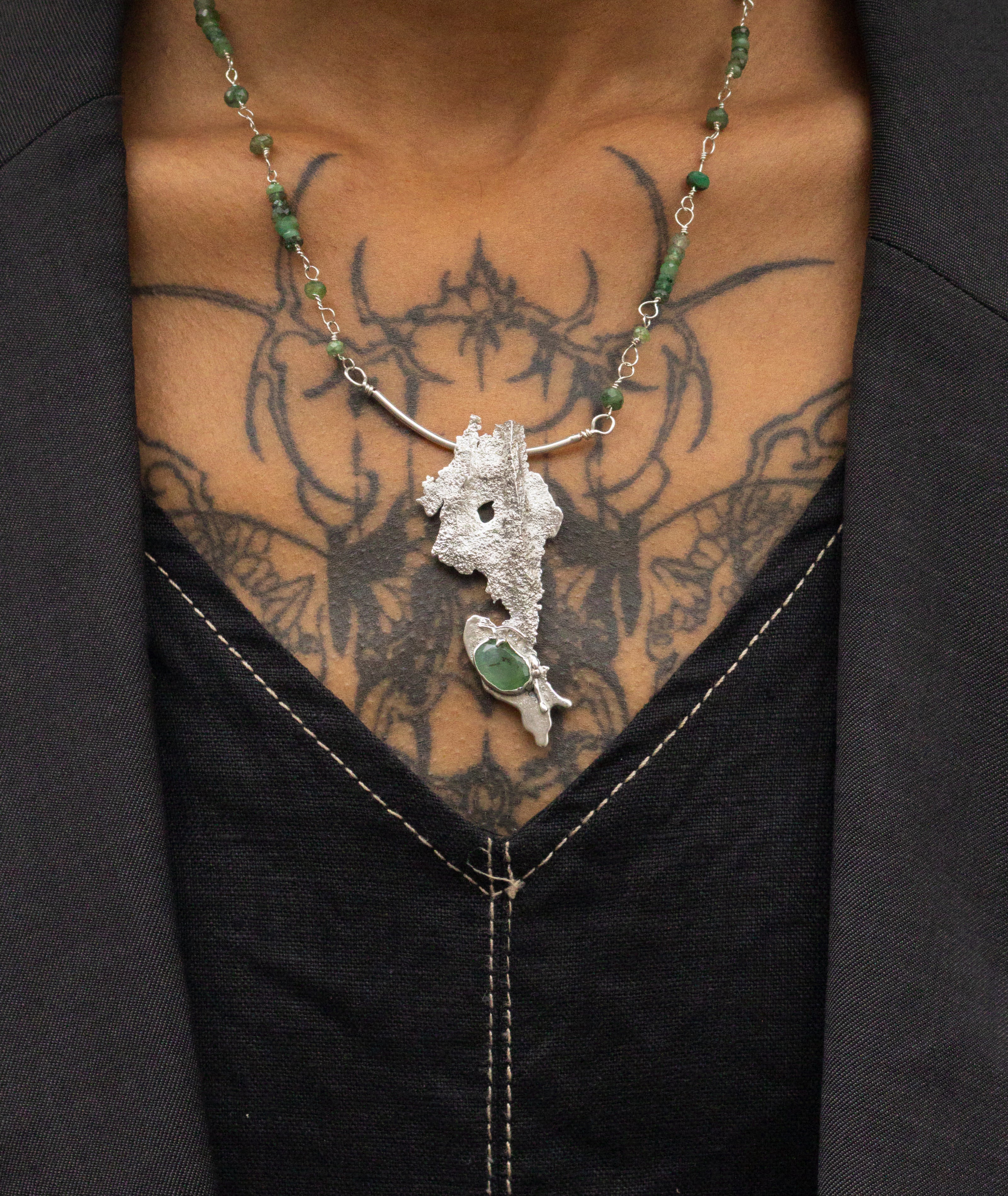 Elle entre ici en résonance avec Haïti, île de contrastes et de fertilité, terre à la fois blessée et féconde. Ce bijou est une célébration de la terre-mère et du lien vital qui unit l’humain qui porte le bijou à sa mémoire et à son environnement.