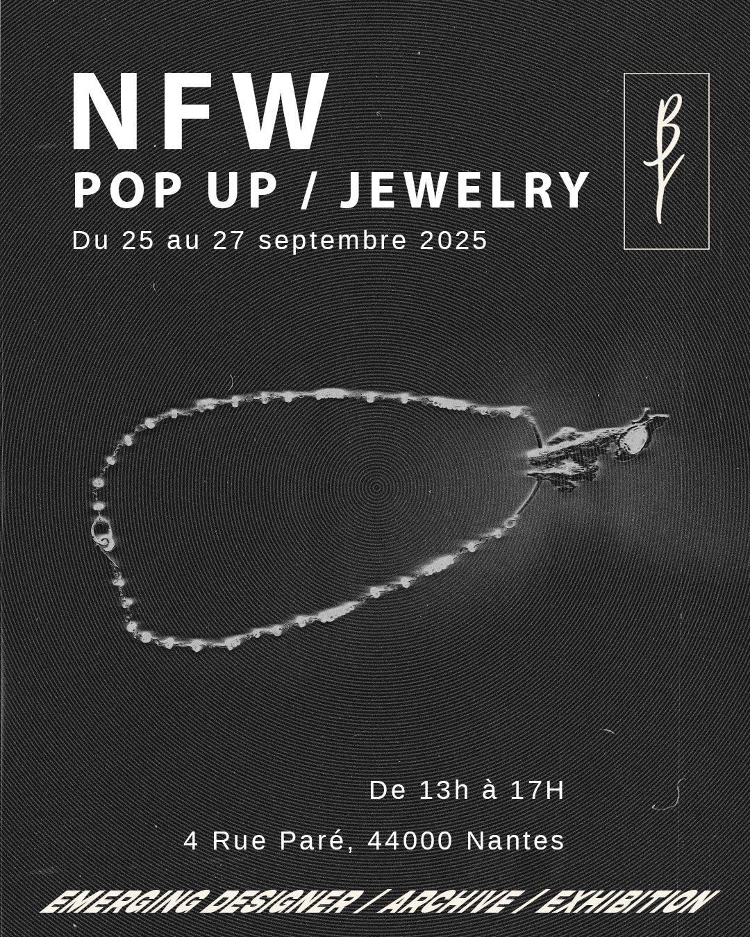 Dans un contexte où le prix tend parfois à détourner le regard de ce que le bijou a à dire, j’ai voulu replacer l’attention sur ce qu’il raconte, sur le lien qu’il crée entre la matière, la main et celui ou celle qui le porte. Cette exposition est donc une invitation à voir le bijou autrement, non comme un simple ornement, mais comme une présence vivante, un témoin silencieux de nos histoires.